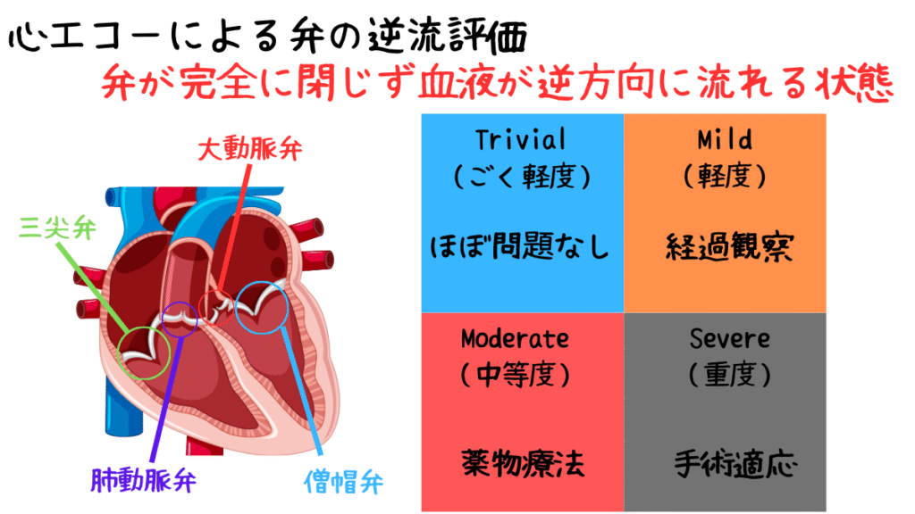 以下に、主な弁の逆流とその評価ポイントを解説します。