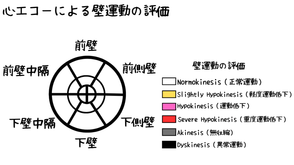 心エコー(心臓超音波検査)における壁運動の分類は、