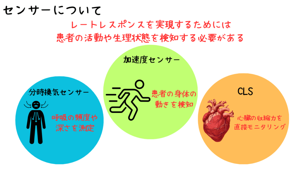 レートレスポンスを実現するためには、患者の活動や生理状態を検知するセンサーが欠かせません。