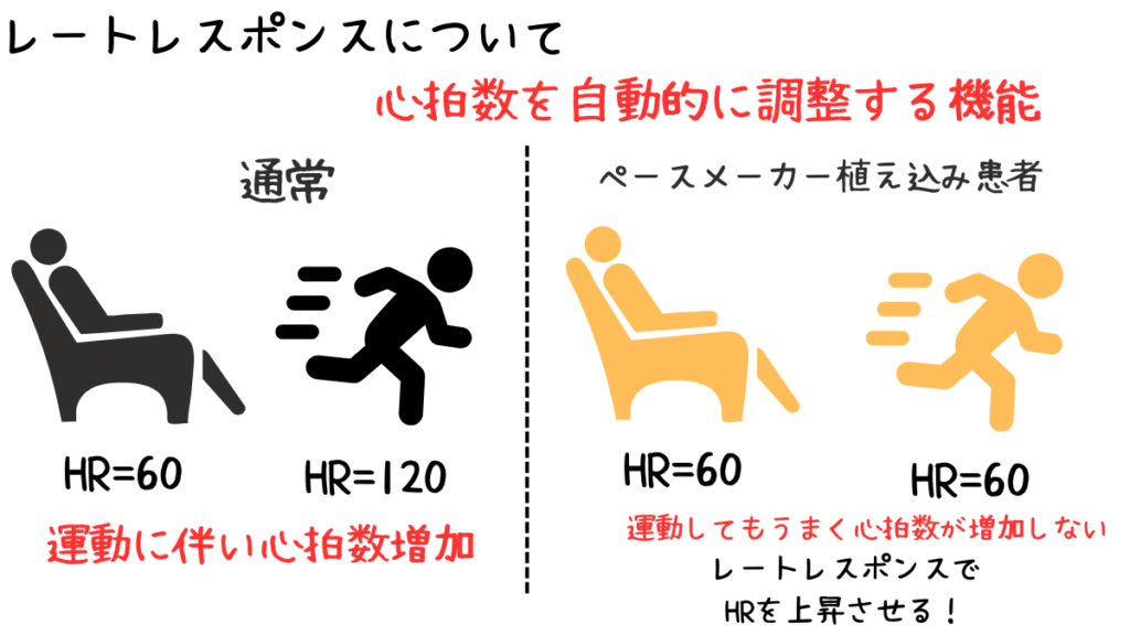 - レートレスポンスは患者の活動量に応じて心拍数を自動調整する機能