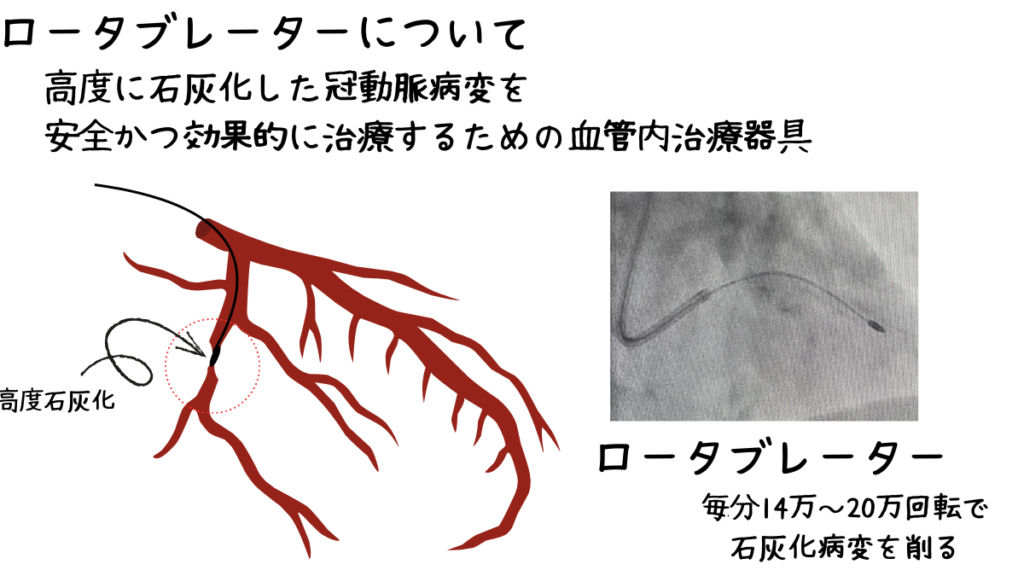 ロータブレーターは、硬く石灰化した冠動脈病変を安全に削り、血流改善を可能にする高度な治療法です。